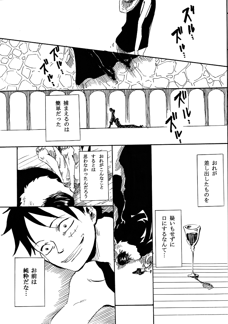 イベントペーパー8に描いた漫画です。 鳥かご1の始まりの話になります。 これペーパーに載せるような漫画じゃないよね(´∀`;) 黒ルフィが苦手な方は見ちゃだめですよ。 ↓